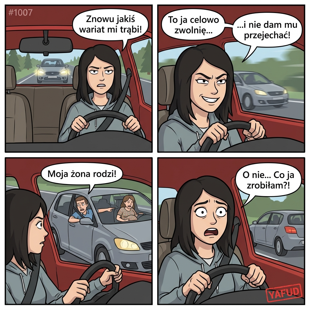 57Ludzie a przede wszystkim faceci. Opanujcie się wyzywacie ją od najgorszych, gdy wcale nie wiedziała, że ta kobieta jest w ciąży. Myślała że to jedzie zwykły cham, który trąbi na nią zamiast normalnie ją wyprzedzić. Z jej wypowiedzi jasno wynika że gdyby tylko wiedziała że ta kobieta jest w ciąży nie utrudniałaby jazdy. Ciekawe jak wy byście zareagowali w takiej sytuacji. A do facetów to statystycznie właśnie mężczyźni powodują najwięcej wypadków. Wiec zanim powiecie, że kobiety nie umieją jeździć powinniście się kilkakrotnie zastanowić.