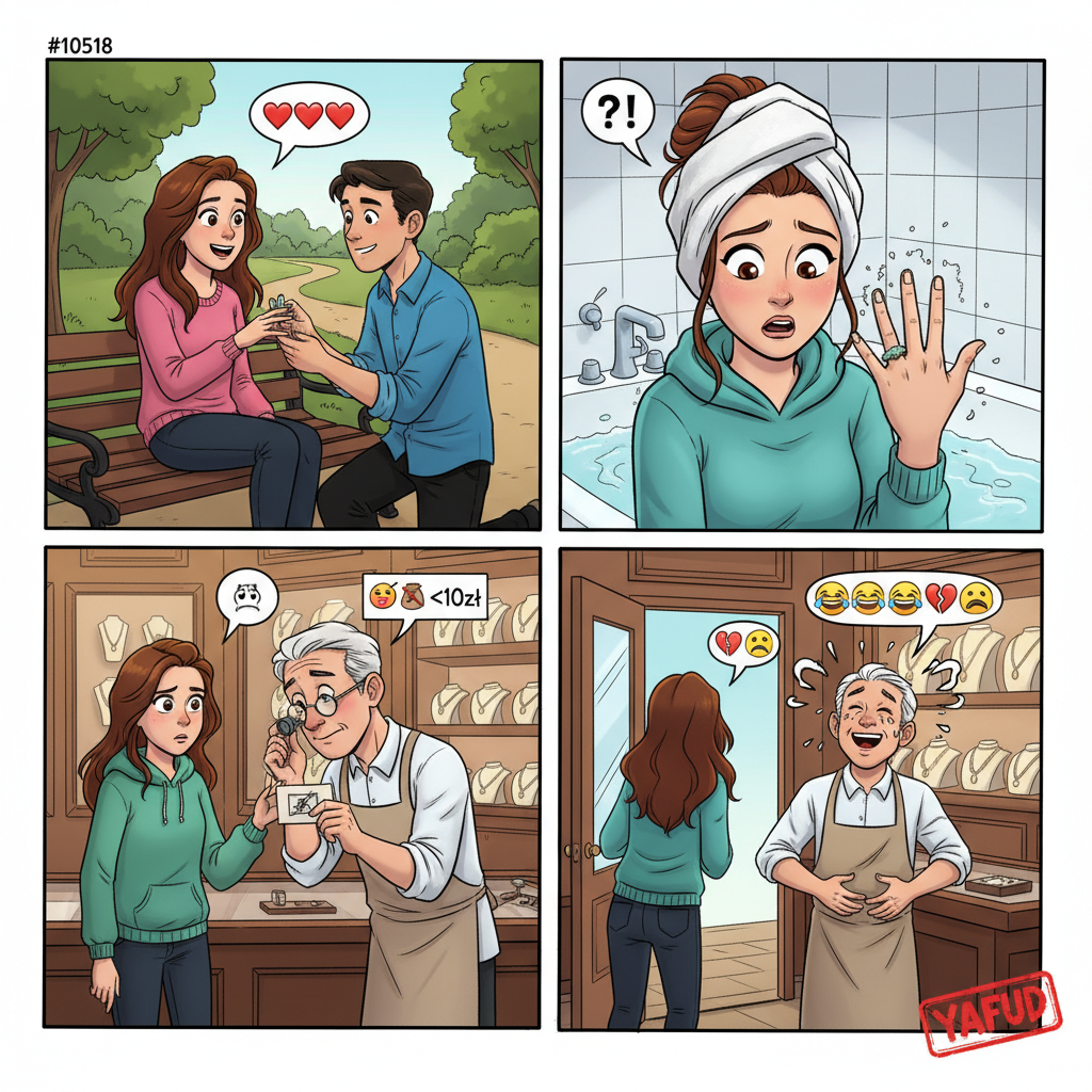 69Dla kobiety dzień zaręczyn jest drugim najważniejszym dniem w życiu (zaraz po dniu ślubu i dniu urodzin jej dziecka, które stoją na równi). Jeśli facet daje jej w ten ważny dzień pierścionek, który po pewnym czasie gnije... Tonie dziwcie się, że jest to dla niej YAFUD.