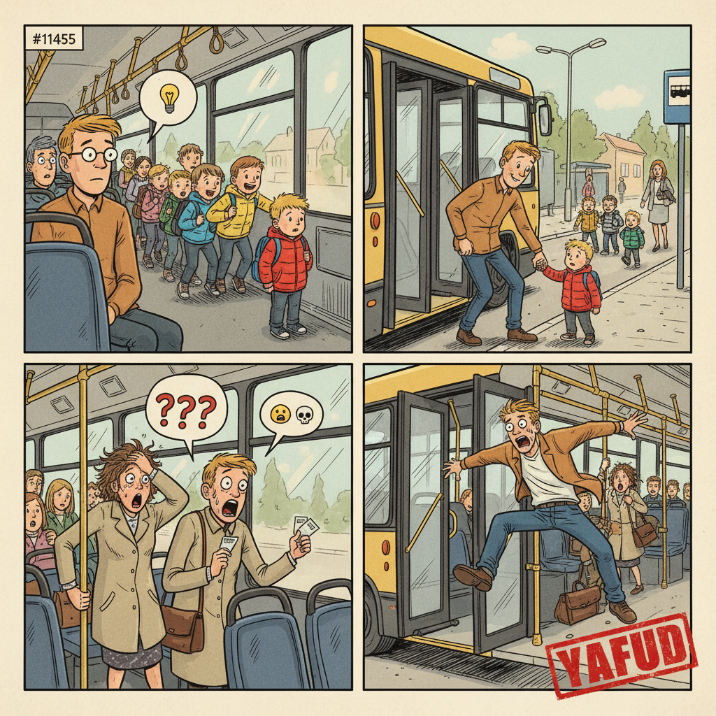 wstyd mi za Ciebie, jak mogles? rozumiem,ze chciales dobrze, ale nawet jesli nie chciales sie przyznac, ze to Ty wypchnales dziecko, mogles powiedziec, ze na jednym z poprzednich przystankow wysiadala wycieczka szkolna i mogl chlopczyk wybrac sie z nimi.