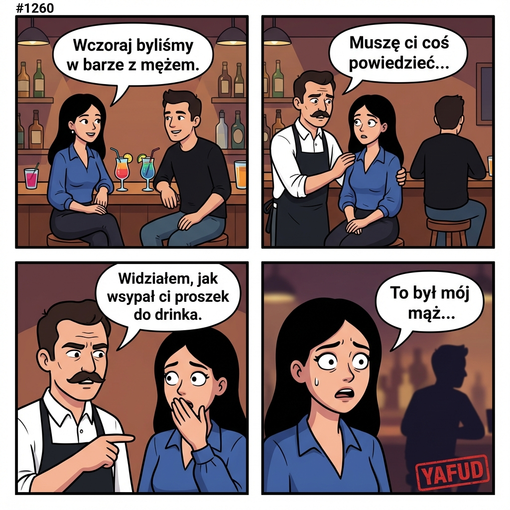 Barman nie wiedział pewnie, ze ten facet to jej mąż i powiedział to ze względu na jej bezpieczeństwo ponieważ, gdyby okazało sie, iż to nie jest jej małżonek, to wieczór pewnie zakończyłby sie gwaltem.