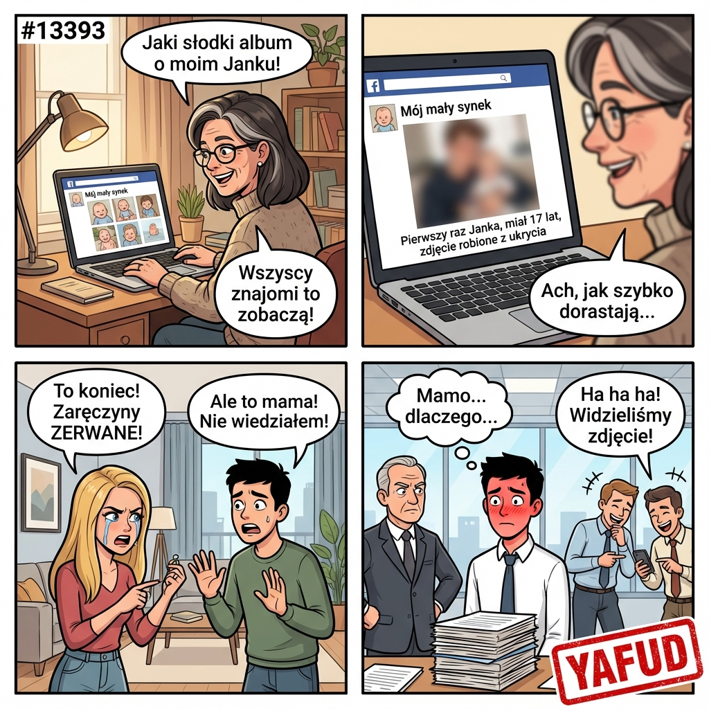 13Jak poje*anym trzeba być, żeby dawać takie zdjęcia? Jak poje*anym trzeba być, żeby zapraszać do znajomych znajomych swojego syna? Jak poje*anym trzeba być, żeby nie zdawać sobie sprawy, że poje*ana matka cyka Ci zdjęcia przy seksie? Jak poje*anym trzeba być, żeby nie odebrać matce dostępu do portali społecznościowych na zawsze?