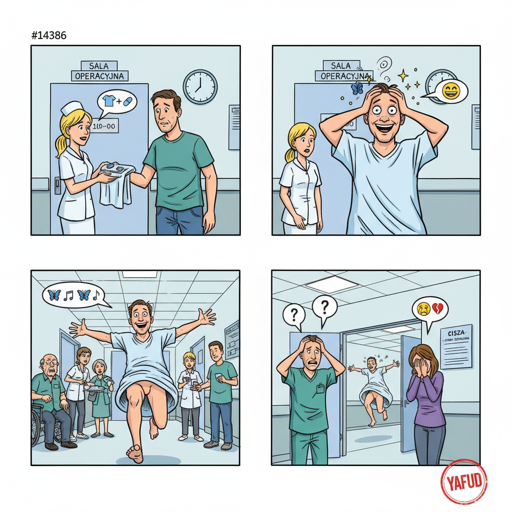 34Od razu mówię do łowców fake'ów - miałem niedawno wycinanie migdałki. Dostałem głupiego Jasia w tabletce, leżałem na sali, po 10 minutach zawieźli mnie na salę operacyjną i dali mi narkozę. Więc ten yafud mógł się wydarzyć.