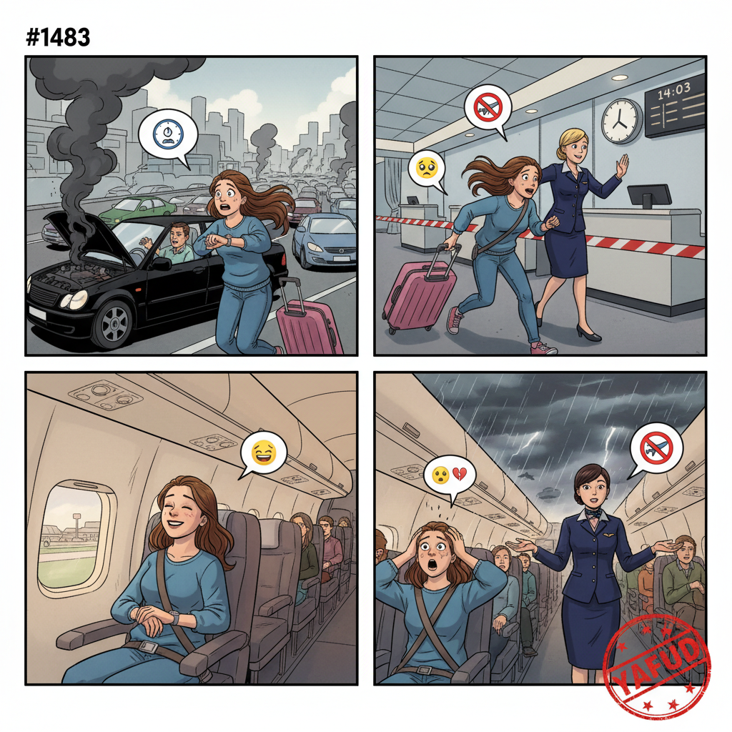 Wybierałam się na tydzień do Anglii aby odwiedzić koleżanki. Na lotnisko odwozili mnie koledzy (mieszkam 80km od Krakowa). Tuż przed Nową Hutą stanęliśmy w gigantycznym korku... a czas płynął. Została godzina do zakończenia odprawy i... zepsuł nam się samochód - spaliło się sprzęgło, które zresztą było naprawiane kilka dni wcześniej. Zadzwoniłam więc po taksówkę która zamiast po obiecanych 5 minutach przyjechała po 20. Kierowca robił co mógł abym zdążyła na odprawę, ale na mieście był kolejny korek. Dojechałam na lotnisko trzy minuty po zakończeniu odprawy - nie wpuścili mnie. Nie muszę chyba mówić jak bardzo się zdenerwowałam. Poszłam przebookować bilet, ale nie miałam już przy sobie złotówek bo wszystko poszło na taksówkę - musiałam więc biec na drugi koniec lotniska aby w kantorze zamienić funty na złotówki i szybko wrócić (na wieczorny lot było tylko 7 wolnych miejsc a kolejka już się tworzyła). Przebookowałam bilet na wieczór i cały dzień czekałam w Krakowie na kolejny lot. Wieczorem spokojnie pojechałam z powrotem do Balic. Przeszłam przez odprawę bez żadnych problemów i bez opóźnień. Samolot został odwołany ze względu na trudne warunki atmosferyczne. YAFUD«Poprzednia wpadkaNastępna wpadka »