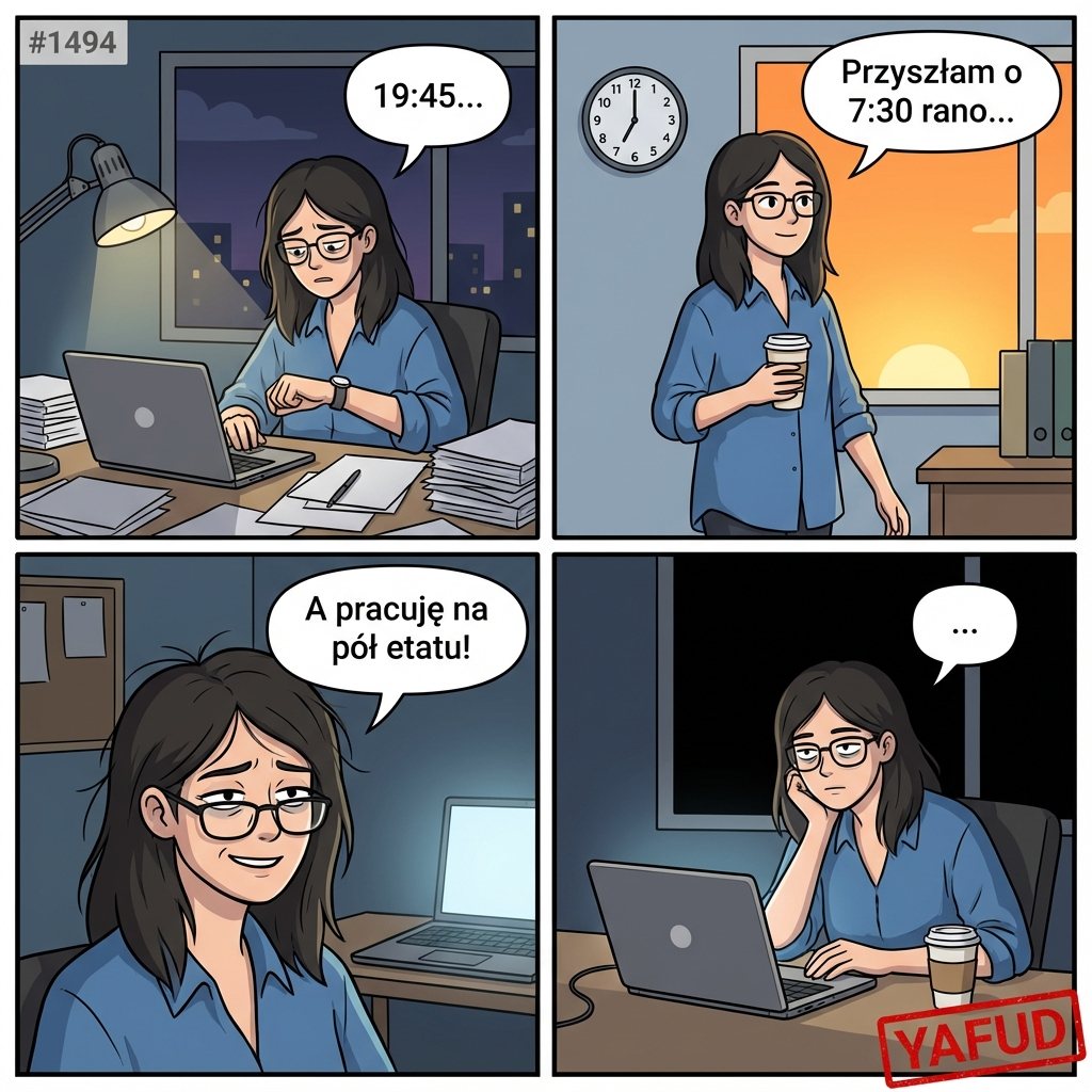 A co to kogo obchodzi? To nie jest strona od tego. Byłoby tu multum historii jakby każdy się chwalił, że danego dnia robi nadgodziny.