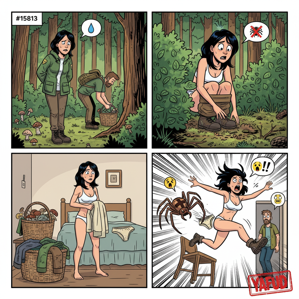 Moja koleżanka opowiadała, jak kiedyś sikała w publicznej WC, pozycja na narciarza, białe majtki w dół. I nagle na środek tych białych majtek spadł włochaty wielki pająk. Nie chcę sobie wyobrażać jak wszystko tam zasikała.