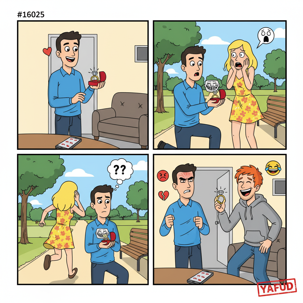 Dziewczynie się nie dziwię. Widać, że mocno czekała aż się oświadczysz. Poczucie humoru i dystans mogą okazać ci, którym wisi, czy będą z tym czy z innym, czy się ktoś oświadczy czy nie.