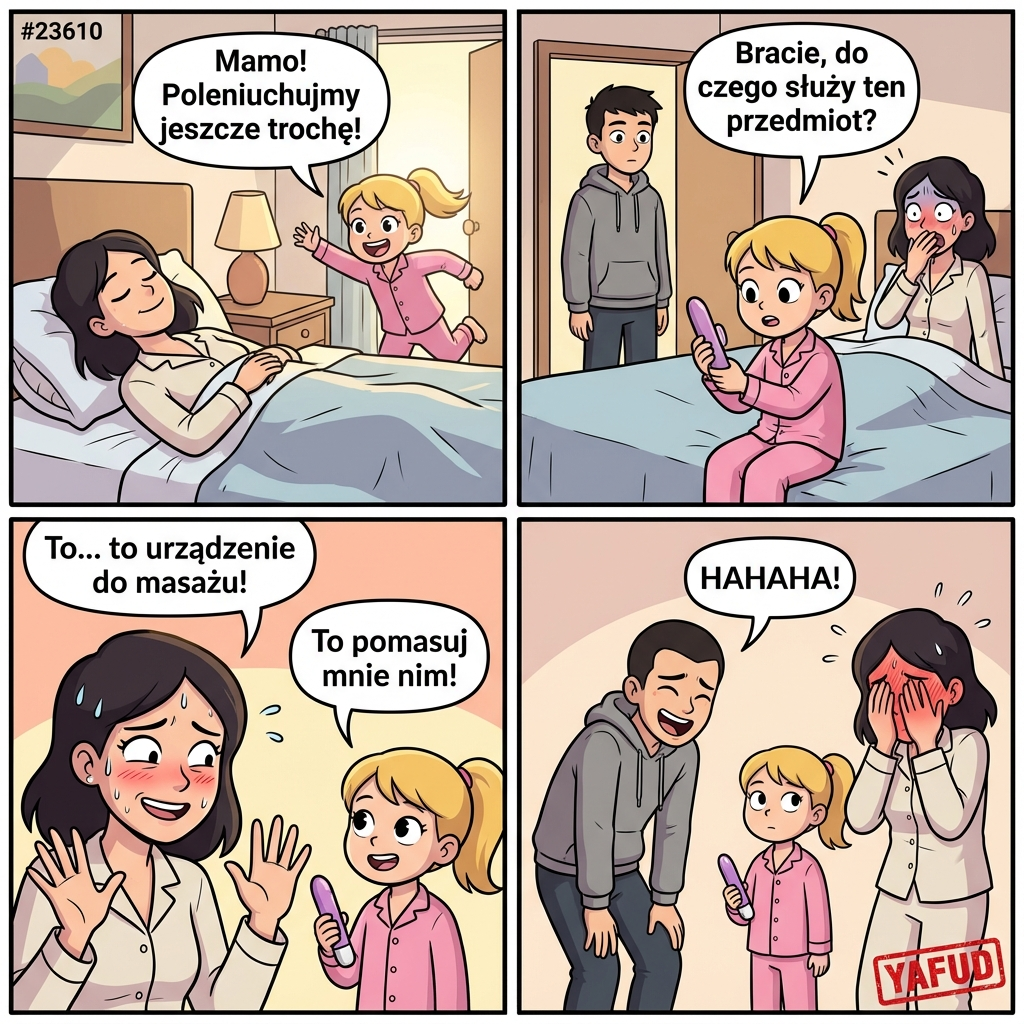 22Za 10 lat córka napisze tutaj: "wchodzę do pokoju mamy i znajduję dziwne urządzenie. Mama mówi, że to do masażu, więc poprosiłam ją o pomasowanie mnie. Mój brat (wtedy 18letni) zaczął się śmiać, a mama zrobiła się czerwona. Dziś już wiem o co wtedy chodziło. YAFUD":D