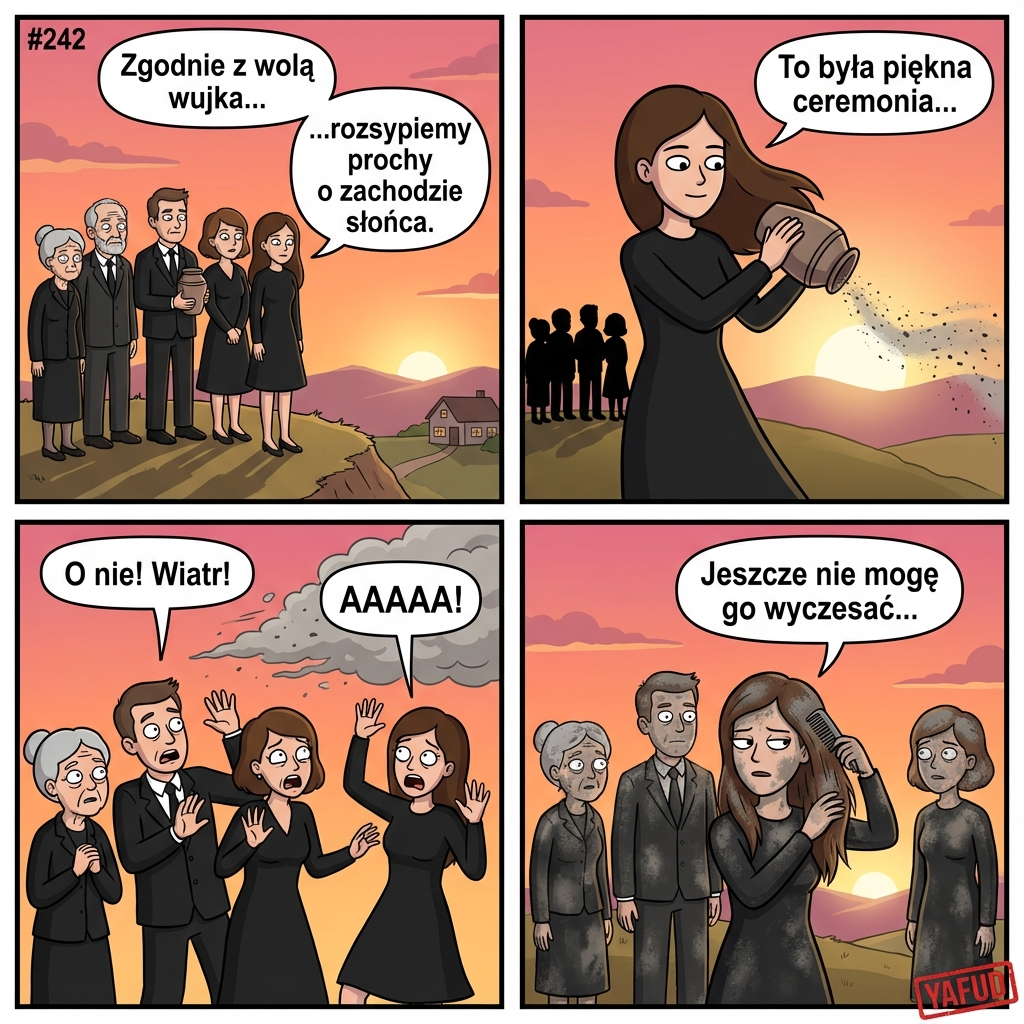 7Gdzie ty facet mieszkasz? Wiesz, że w Polsce jest zakaz rozsypywania ludzkich prochów? Nawet na własnym terenie nie wolno.