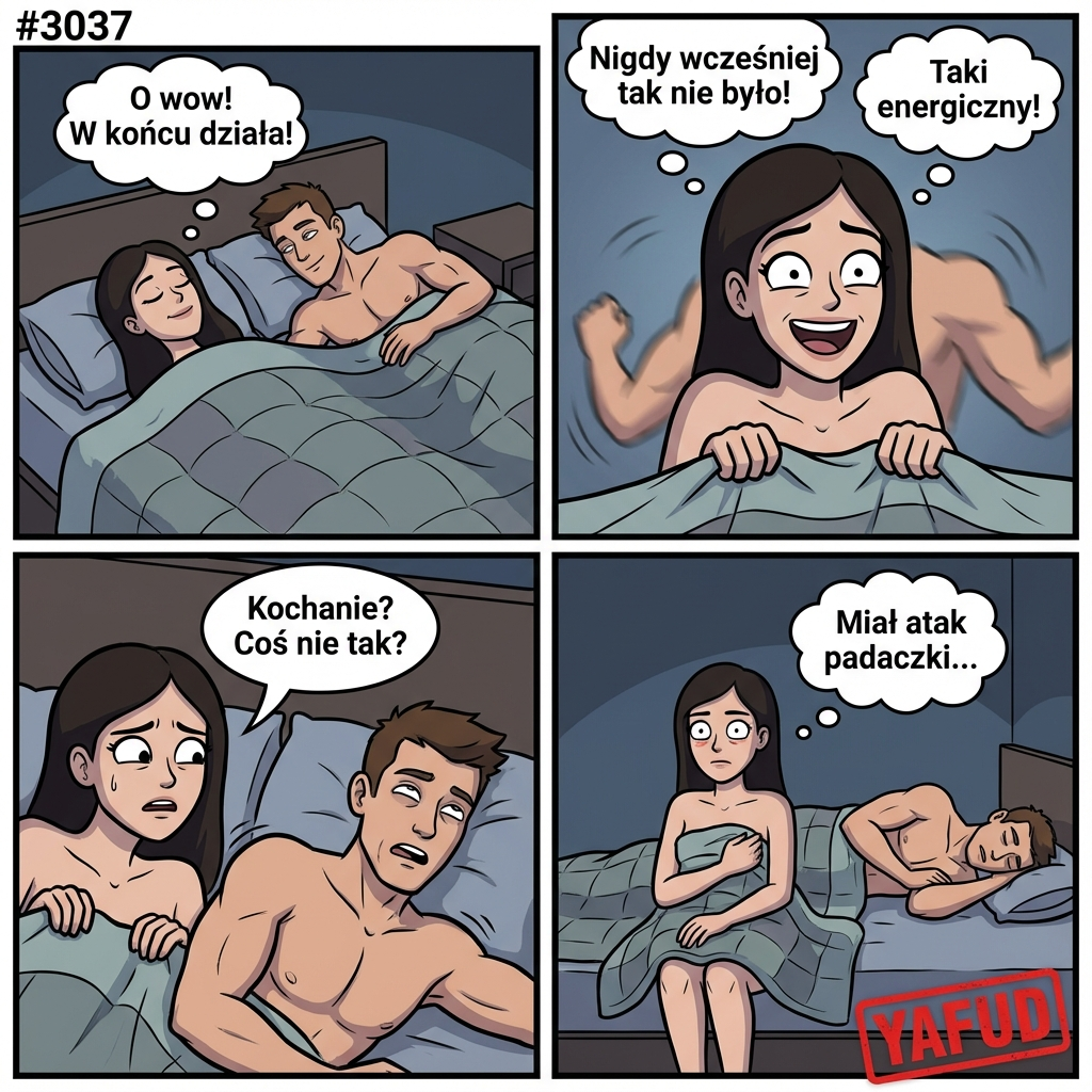 Ostatnio podczas seksu po raz pierwszy byłam zadowolona z 'pracy' mojego faceta, osiągając super orgazm jakiego nie doświadczyłam nigdy wcześniej... do czasu aż zauważyłam, że on będąc we mnie dostał ataku padaczki i dlatego był taki energiczny... YAFUD«Poprzednia wpadkaNastępna wpadka »
