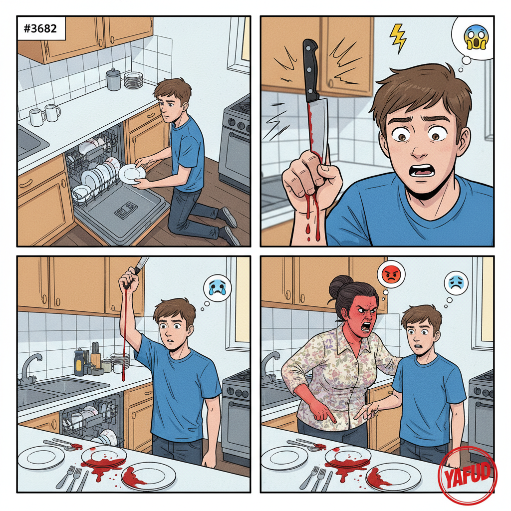 Wyciągałem dziś naczynia ze zmywarki, kiedy nóż wbił mi się w palec i zaklinował w połowie paznokcia. Mama zaczęła na mnie krzyczeć, że zalewam krwią czyste naczynia. YAFUD«Poprzednia wpadkaNastępna wpadka »