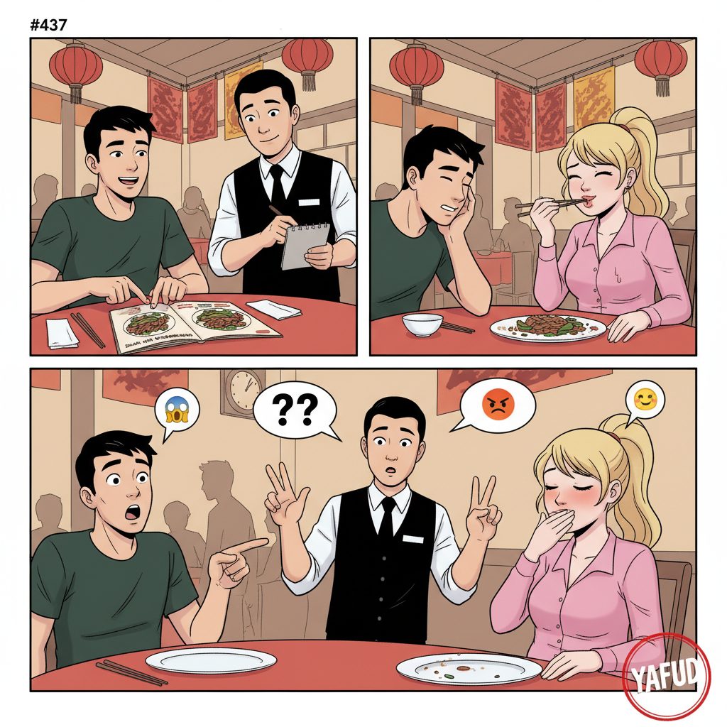 W chińskich restauracjach tak jest. Prawie we wszystkich. Oni po prostu tak jedzą że każde danie jest na kilka osób. Zresztą jak kelnerem był chinczyk to mógł nie zrozumieć do końca.