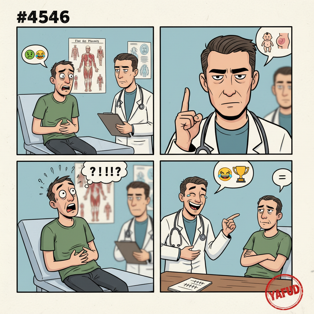 Od paru dni ciągle wymiotowałem więc wybrałem się w końcu do lekarza. Jaka diagnoza? Otóż najwidoczniej jestem pierwszym facetem, który zaszedł w ciążę. Po kilku minutach szoku i dopytywania się o to jak to jest w ogóle możliwe - lekarz wybuchnął gromkim śmiechem i oświadczył, że tak sobie tylko ze mnie zażartował. Na pocieszenie dowiedziałem się, że moja reakcja była najlepszą do tej pory. YAFUD«Poprzednia wpadkaNastępna wpadka »