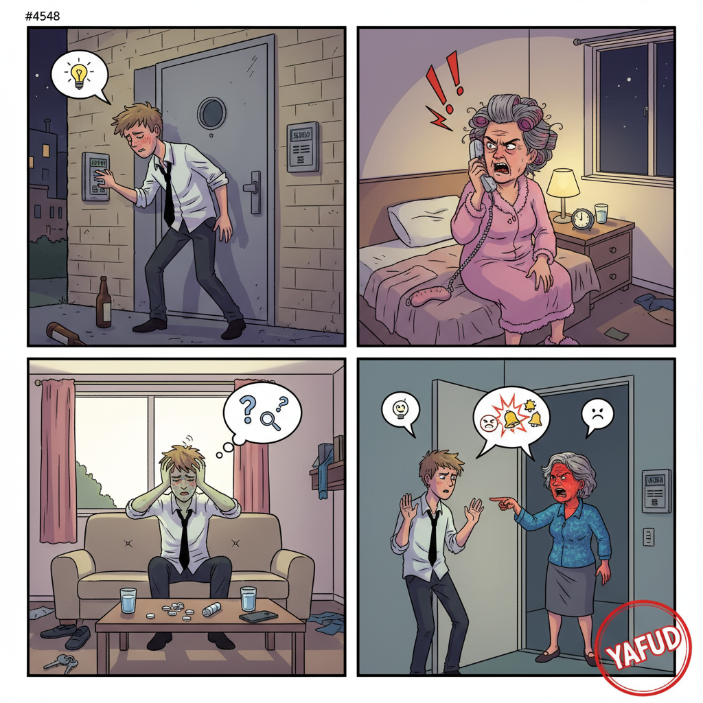 Wczoraj wróciłem o 3-ciej w nocy z imprezy, kompletnie nawalony. Nie miałem pojęcia jak się dostałem do domu... Do czasu aż sąsiadka nie przyszła mnie okrzyczeć za to wydzwaniałem do niej domofonem po nocy i prosiłem o otworzenie drzwi - argumentując, że nie chcę budzić nikogo u siebie w domu, bo późno. YAFUD«Poprzednia wpadkaNastępna wpadka »