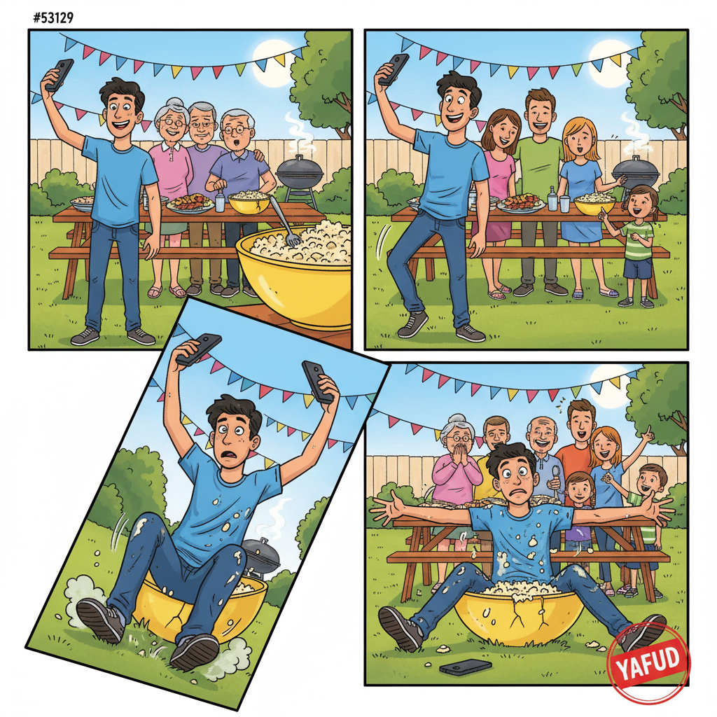 Na rodzinnym grillu, robiąc grupowe zdjęcie, potknąłem się i wpadłem tyłem prosto w miskę z sałatką ziemniaczaną. YAFUD«Poprzednia wpadkaNastępna wpadka »
