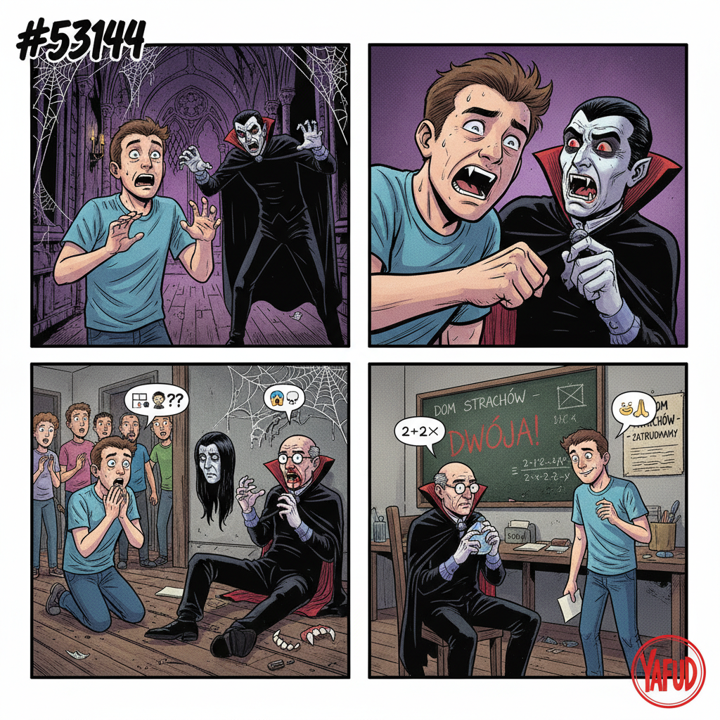 W domu strachów tak bardzo się wystraszyłem, że uderzyłem aktora przebranego za wampira. Okazało się, że to mój były nauczyciel matematyki. YAFUD«Poprzednia wpadkaNastępna wpadka »