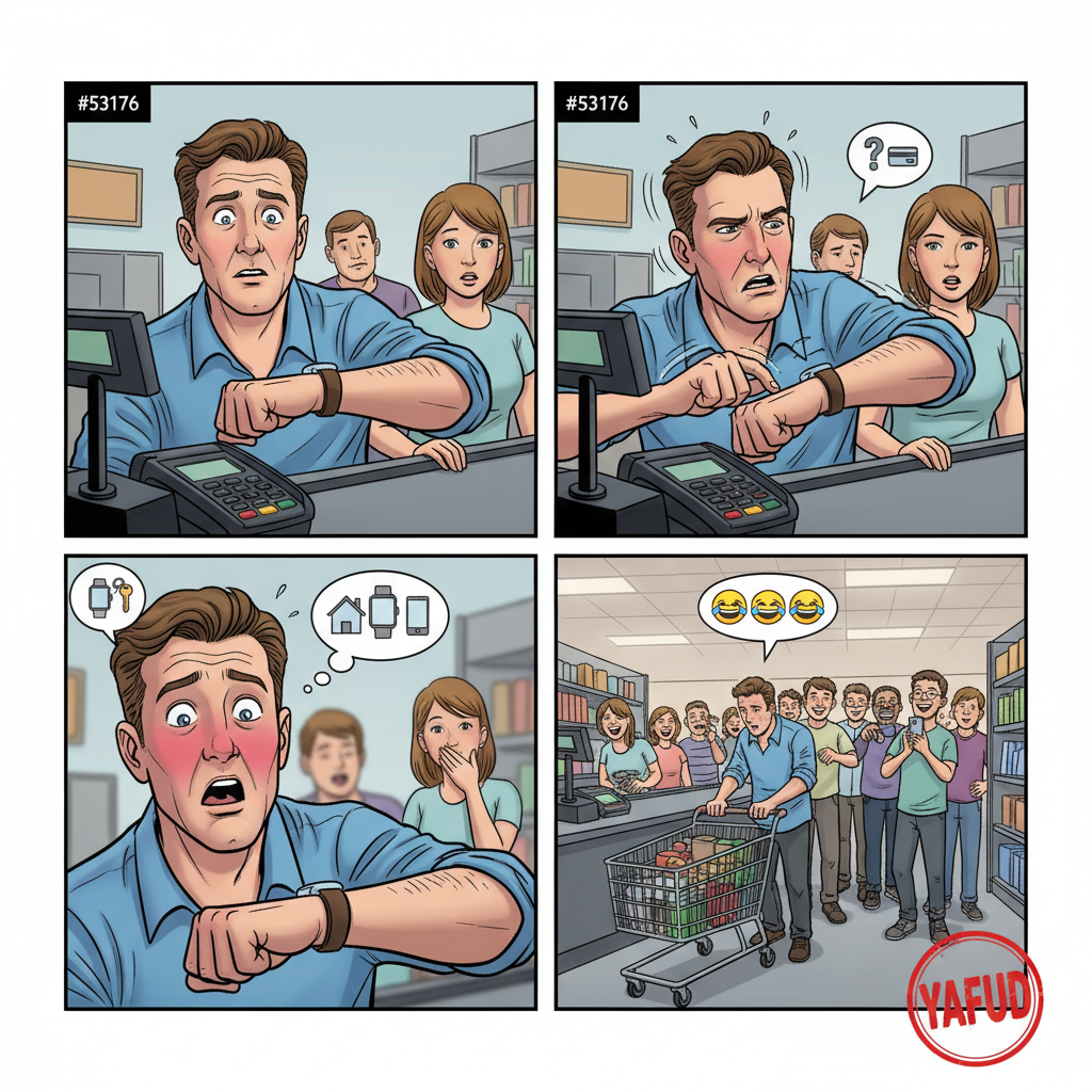 Chciałem zapłacić w sklepie zegarkiem. Próbowałem kilka razy, ale terminal nie reagował. Sprzedawczyni zapytała: "A czy ten zegarek na pewno ma funkcję płacenia?". Okazało się, że to zwykły, analogowy zegarek, a smartwatch został w domu. Nie miałem przy sobie ani komórki, ani portfela więc musiałem przeprosić i odnieść zakupy na miejsce dopingowany śmiechem całkiem sporej kolejki. YAFUD«Poprzednia wpadkaNastępna wpadka »