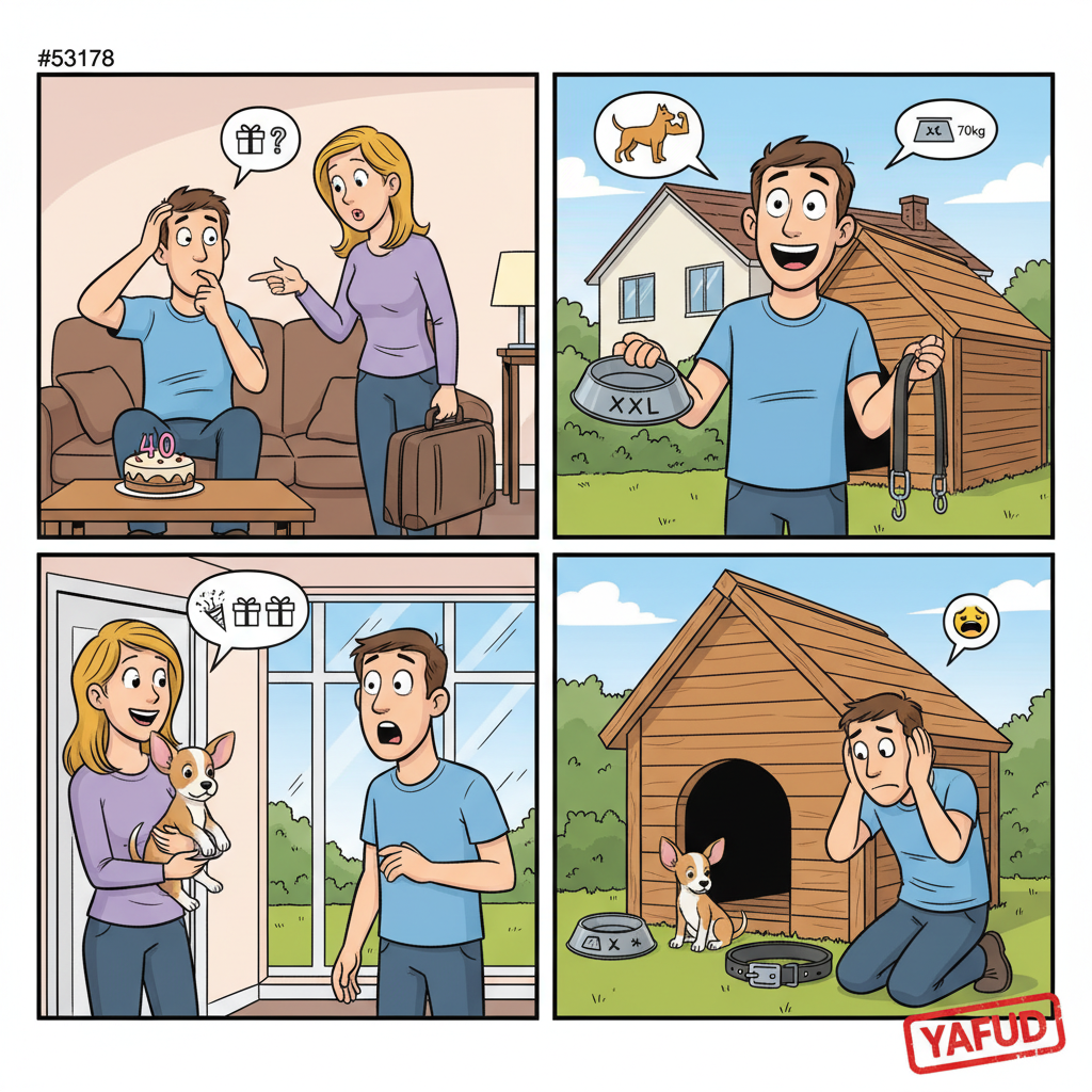 Zawsze lubiłem duże psy ale nigdy nie mogłem sobie na nie pozwolić bo mieszkałem w mieszkaniu 25m. Od kilku miesięcy jestem szczęśliwym posiadaczem domku jednorodzinnego. Żona spytała mnie co chciałbym dostać na 40 urodziny, nie miałem pojęcia ale wymyśliłem że dobrym pomysłem będzie jakiś duży pies. Zawsze podobała mi się rasa Pies kanaryjski, tak też powiedziałem żonie, akurat była w dwutygodniowej delegacji więc kupiłem wielką budę (pies około 70kg gdy dorośnie) smycz, dużą obroże i wielką michę na żarcie, żona wróciła z prezentem uśmiechnięta i daje mi szczeniaka rasy pies kananejski... YAFUD«Poprzednia wpadkaNastępna wpadka »