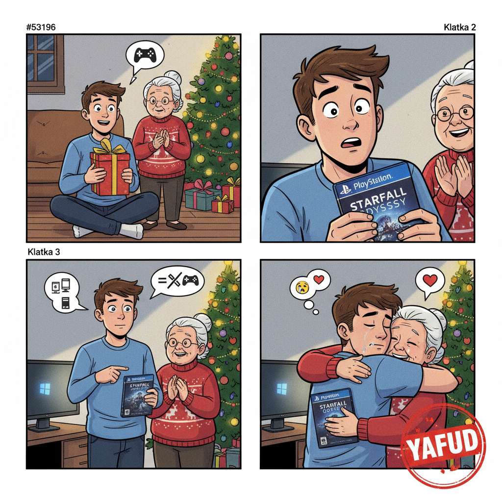 Na Gwiazdkę dostałem od babci grę komputerową, o którą prosiłem. Niestety, kupiła wersję na konsolę, której nie mam. YAFUD«Poprzednia wpadkaNastępna wpadka »