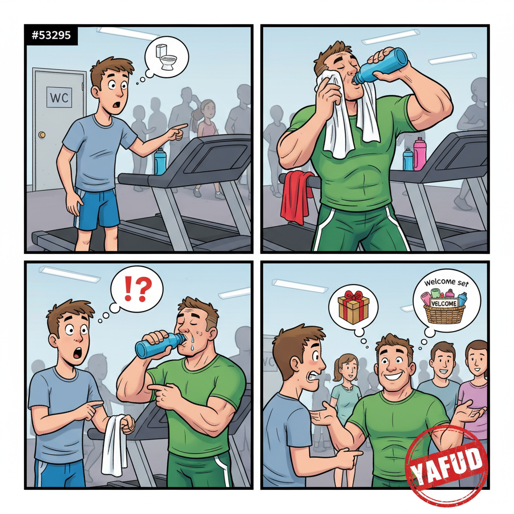 Na siłowni zostawiłem na chwilę na bieżni butelkę z wodą i ręcznik, żeby pójść do toalety. Gdy wróciłem, jakiś mężczyzna energicznie wycierał sobie twarz moim ręcznikiem, po czym napił się z mojej butelki. Kiedy zwróciłem mu uwagę, spojrzał na mnie i powiedział 'O, przepraszam, myślałem, że to z zestawu powitalnego dla nowych klientów'. YAFUD«Poprzednia wpadkaNastępna wpadka »