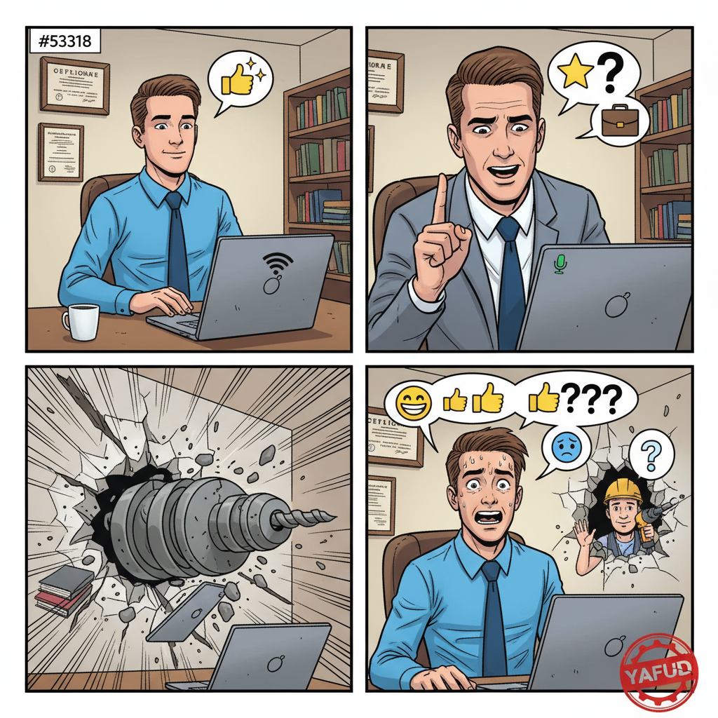 Podczas rozmowy kwalifikacyjnej online, moje połączenie internetowe było idealne. Dokładnie w momencie, gdy rekruter zadał ostatnie, najważniejsze pytanie, mój sąsiad zaczął wiercić w ścianie, którą dzielimy. Całe mieszkanie zaczęło wibrować, a ja nie słyszałem ani słowa. YAFUD«Poprzednia wpadkaNastępna wpadka »