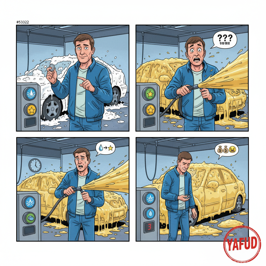 Na myjni samoobsługowej wrzuciłem monetę i zamiast programu 'płukanie', wybrałem 'woskowanie'. Przez następne dziesięć minut spryskiwałem mój pokryty pianą samochód gorącym woskiem. Zmycie tego wszystkiego kosztowało mnie kolejne trzy żetony. YAFUD«Poprzednia wpadkaNastępna wpadka »