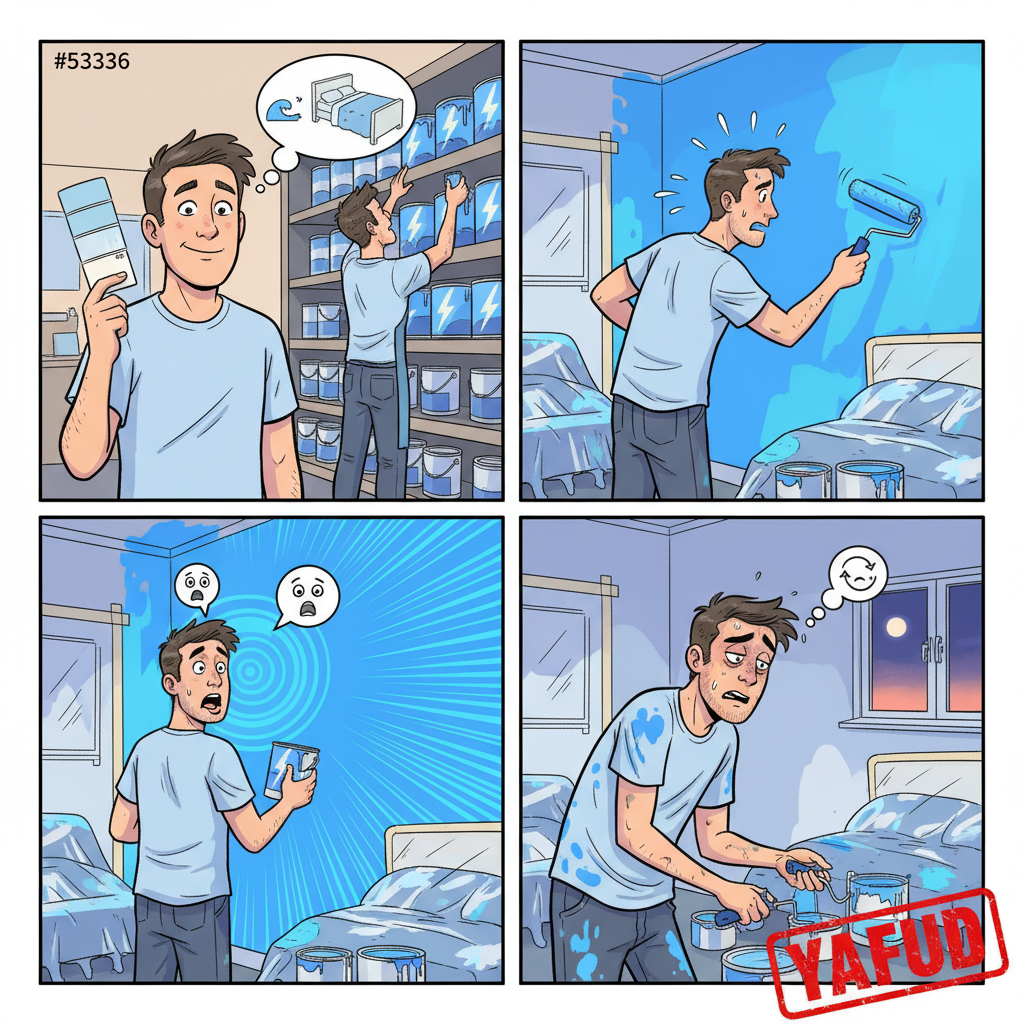 Postanowiłem pomalować sypialnię na spokojny, kojący odcień błękitu. Pojechałem do sklepu budowlanego i spędziłem godzinę na porównywaniu próbek, zanim wybrałem idealny kolor o nazwie 'Szept Oceanu'. Kupiłem wszystkie potrzebne rzeczy: pędzle, wałki, taśmę malarską i dużą puszkę wybranego koloru. Następnego dnia cały ranek spędziłem na starannym przygotowywaniu pokoju, przesuwaniu mebli i oklejaniu krawędzi sufitu i okien. Po obiedzie wreszcie otworzyłem puszkę z farbą. Kolor wydawał się nieco jaśniejszy, niż zapamiętałem, ale uznałem, że to wina oświetlenia w pokoju. Zacząłem malować i po skończeniu pierwszej ściany cofnąłem się, by podziwiać swoje dzieło. Kolor na ścianie nie był 'Szeptem Oceanu';był to szokujący, jaskrawy, elektryczny błękit. Wyglądał jak coś z klubu nocnego z lat 90. Sprawdziłem puszkę jeszcze raz. Okazało się, że pracownik sklepu pomylił się i dał mi farbę z puszki o nazwie 'Kosmiczny Szok'. Musiałem przerwać malowanie, poczekać, aż jaskrawoniebieska ściana wyschnie i wrócić do sklepu po właściwy kolor. Najgorsze było to, że musiałem pomalować 'Kosmiczny Szok' trzema warstwami podkładu, zanim w ogóle mogłem zacząć malować właściwym kolorem. YAFUD«Poprzednia wpadkaNastępna wpadka »