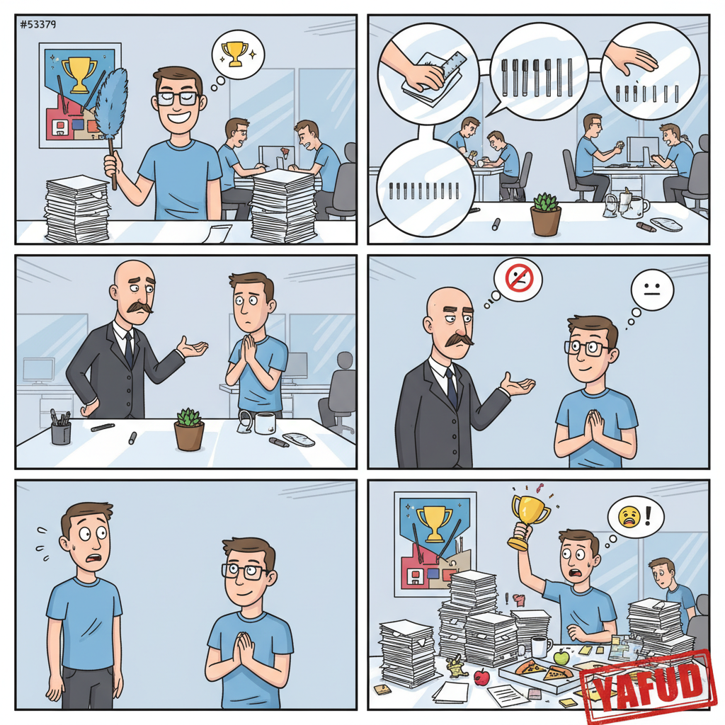 Poświęciłeś tydzień życia na przygotowanie ołtarza produktywności, a szef szukał "autentyczności"i "kreatywnego chaosu". Tak naprawdę szukał wymówki, żeby dać nagrodę swojemu ulubieńcowi z największym bałaganem. Twoja porażka to cenna lekcja: w korporacyjnym teatrze nie liczy się to, co robisz, tylko to, jak dobrze odczytasz niepisany scenariusz. Ty grałeś w 'Perfekcyjną Panią Domu', a oni kręcili 'Wilka z Wall Street'.