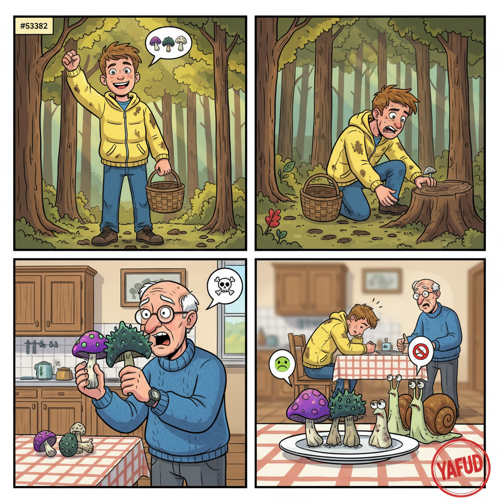 Wybrałem się na grzyby po raz pierwszy w życiu. Przez pięć godzin chodzenia po lesie znalazłem dokładnie trzy grzyby. W domu okazało się, że wszystkie trzy są niejadalne. Dziadek spojrzał na nie i powiedział, że nawet ślimaki ich nie jedzą. YAFUD«Poprzednia wpadkaNastępna wpadka »