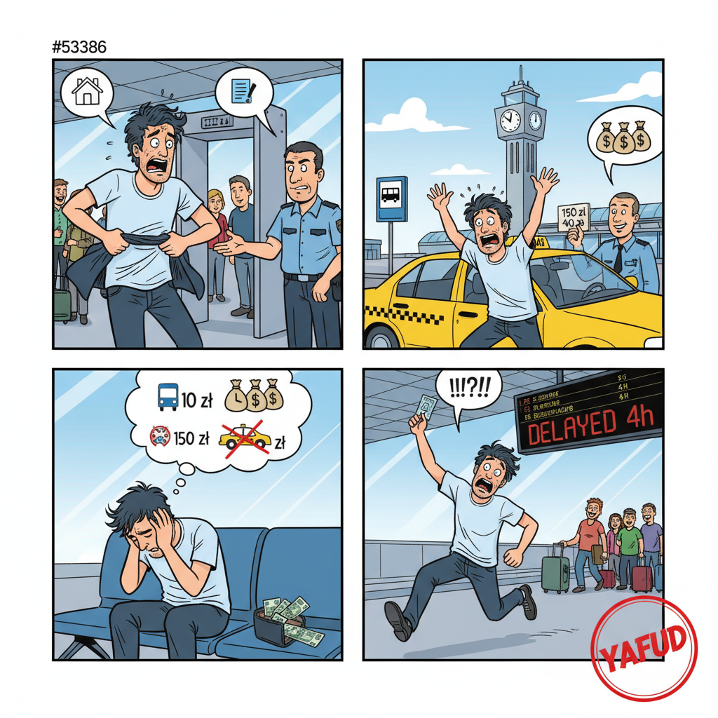 Na lotnisku zorientowałem się, że zapomniałem dowodu osobistego. Wróciłem po niego do domu taksówką za 150 złotych. Kiedy dotarłem z powrotem na lotnisko, okazało się, że lot jest opóźniony o cztery godziny. Spokojnie zdążyłbym wrócić autobusem za 10 złotych. YAFUD«Poprzednia wpadkaNastępna wpadka »