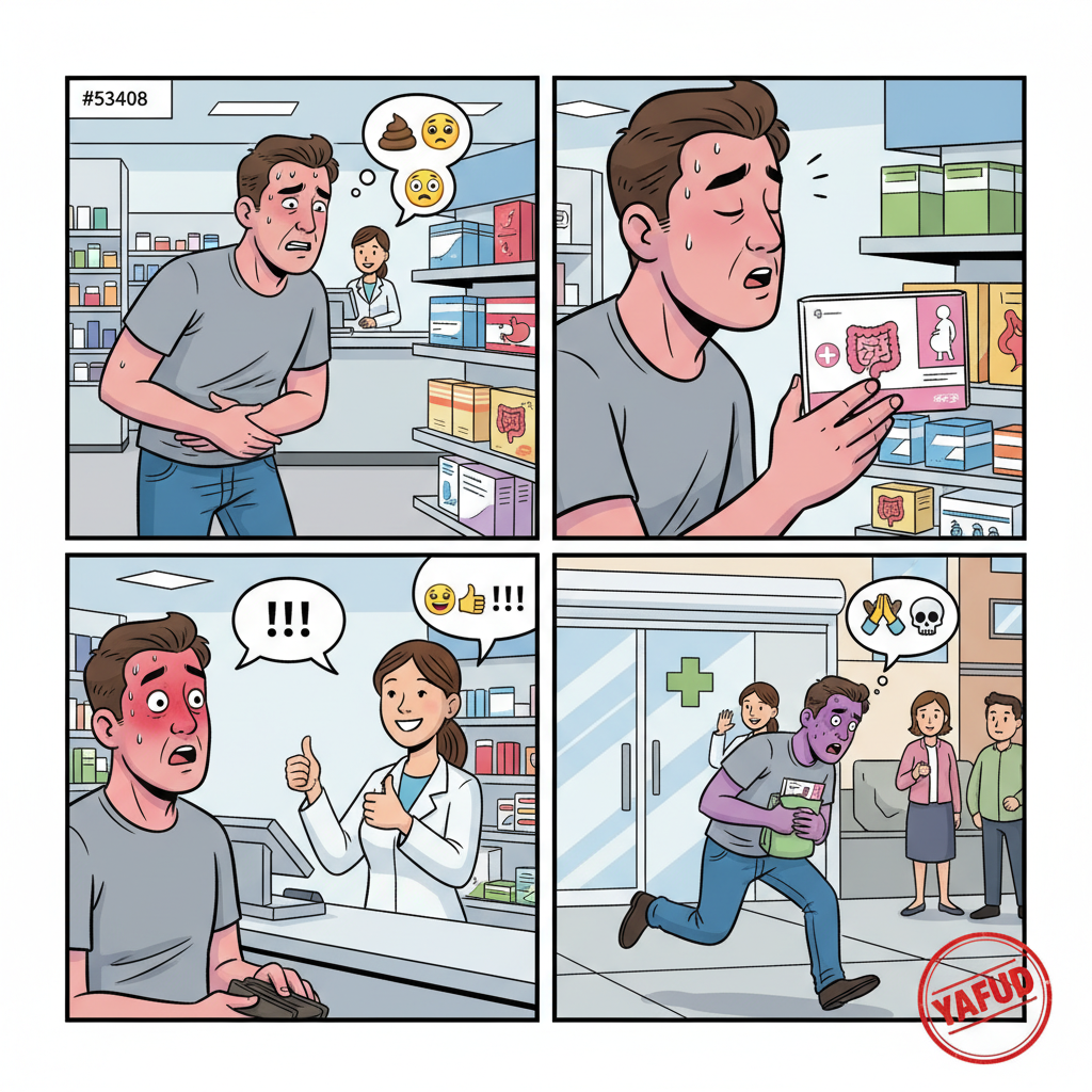 ? Byłem w aptece i szukałem czegoś na silne zaparcia. Wstydziłem się zapytać, więc po prostu wziąłem z półki pudełko, które wydawało się odpowiednie. Przy kasie młoda, uśmiechnięta farmaceutka zeskanowała produkt i powiedziała radośnie: „O, test ciążowy! Powodzenia!”. Byłem tak zmieszany, że po prostu zapłaciłem i wyszedłem. YAFUD