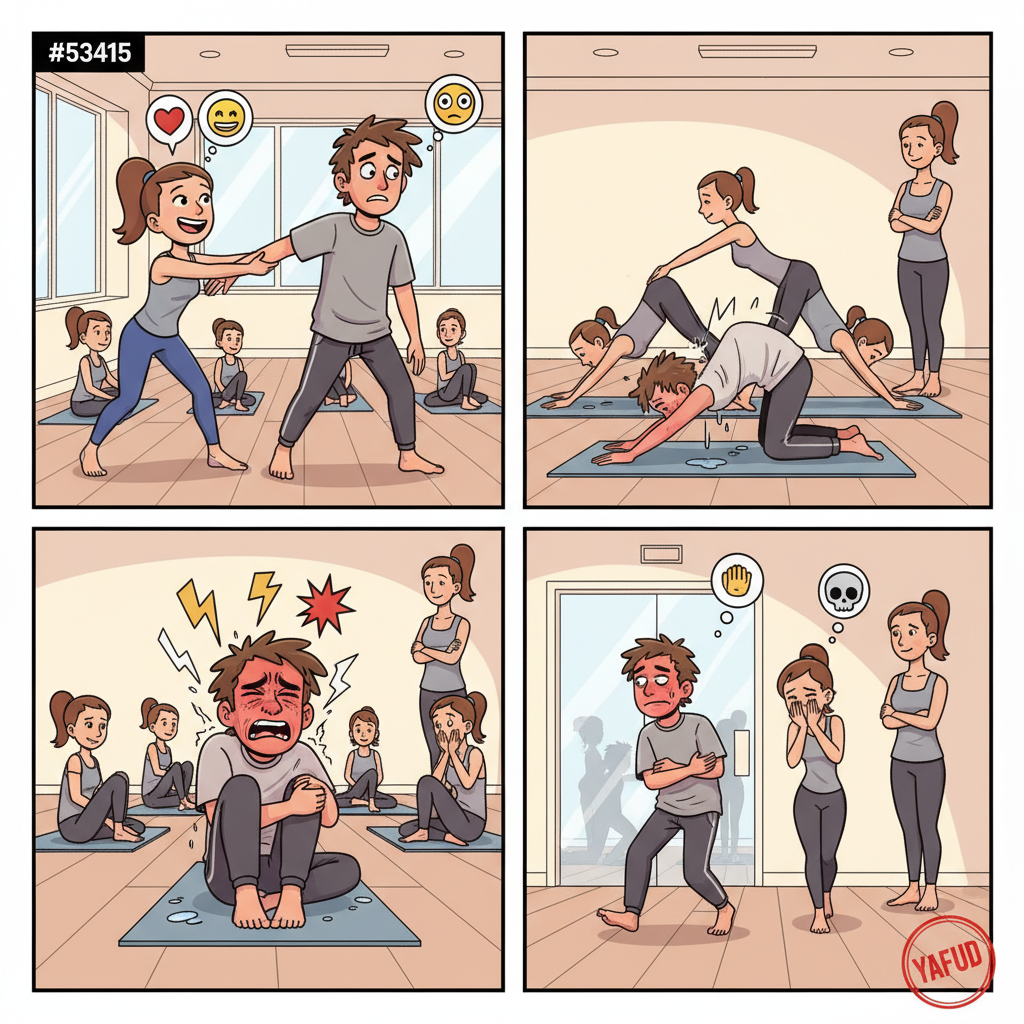 Moja dziewczyna namówiła mnie na jogę. Poszedłem, żeby jej zrobić przyjemność. Instruktorka kazała nam zrobić pozycję psa z głową w dół. Zrobiłem, a po trzydziestu sekundach zrobiło mi się tak słabo, że musiałem usiąść. Wszystkie panie patrzyły się na mnie ze współczuciem. Później podczas skrętów dostałem skurczu i wrzasnąłem. Wyszliśmy w połowie zajęć. Dziewczyna nigdy więcej mnie tam nie zaprosiła. YAFUD«Poprzednia wpadkaNastępna wpadka »