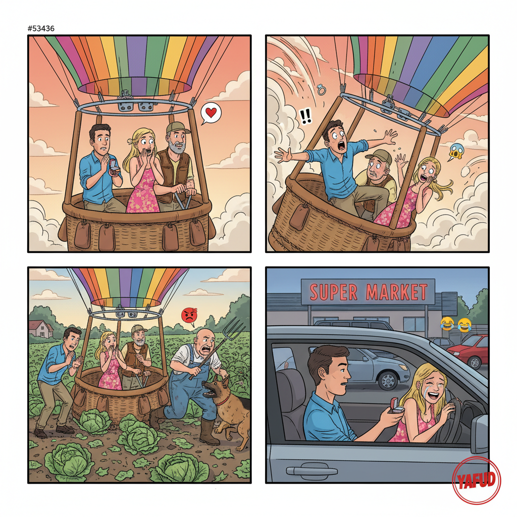 Postanowiłem zrobić mojej dziewczynie niespodziankę na urodziny i oświadczyć się jej w balonie na gorące powietrze. Wszystko zaplanowałem w tajemnicy. Zabrałem ją na rzekomy piknik o wschodzie słońca. Gdy dotarliśmy na polanę, czekał już na nas piękny, kolorowy balon. Byliśmy jedynymi pasażerami z pilotem. Kiedy wznieśliśmy się w powietrze, widok był niesamowity. Uznałem, że to idealny moment. Uklęknąłem na jedno kolano, co w małym koszu było nie lada wyczynem, i wyciągnąłem pierścionek. Właśnie w tej chwili silny podmuch wiatru szarpnął balonem, pierścionek wypadł mi z ręki. Próbowałem go łapać, ale tylko go podbiłem wysoko nad poręcz i poleciał w dół. Moja dziewczyna nawet go nie zobaczyła. Zamarliśmy oboje, patrząc w przepaść. Pilot próbował nas pocieszać, ale atmosfera była już zrujnowana. Na domiar złego, przez zmianę wiatru musieliśmy lądować awaryjnie na polu jakiegoś rolnika, który przywitał nas widłami i psem, bo zniszczyliśmy mu grządkę z kapustą. Oświadczyny powtórzyłem wieczorem, w samochodzie, na parkingu pod supermarketem, pierścionkiem "zastępczym". YAFUD«Poprzednia wpadkaNastępna wpadka »