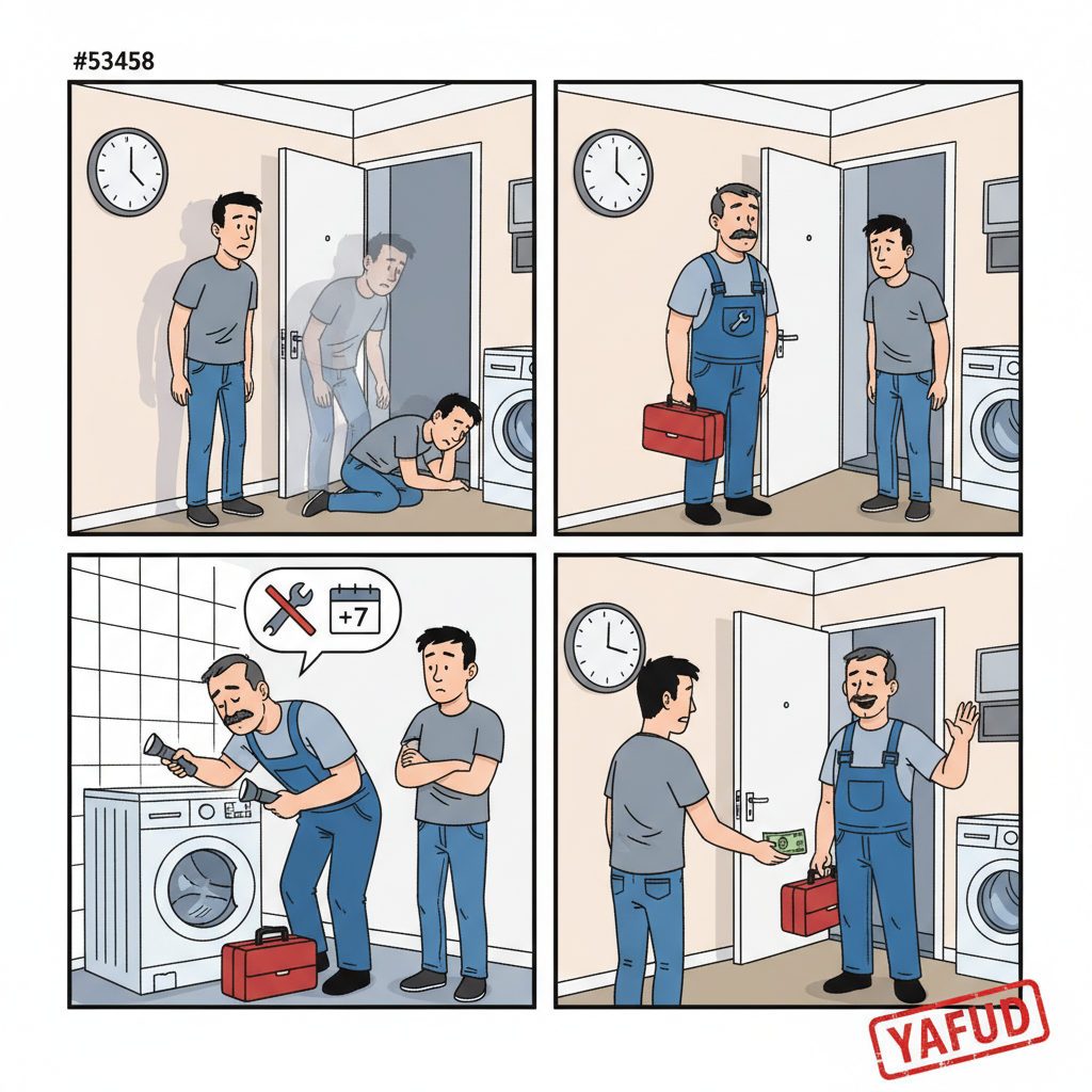 Zamówiłem naprawę pralki. Mistrz powiedział, że przyjdzie między 8:00 a 12:00. Czekałem cały ranek. O 12:30 zadzwonił, że się spóźni. Przyszedł o 14:00. Spojrzał na pralkę i powiedział, że nie ma potrzebnej części. Musiał zamówić i przyjść ponownie za tydzień. Za sam przyjazd i diagnozę zapłaciłem 100 złotych. YAFUD«Poprzednia wpadkaNastępna wpadka »