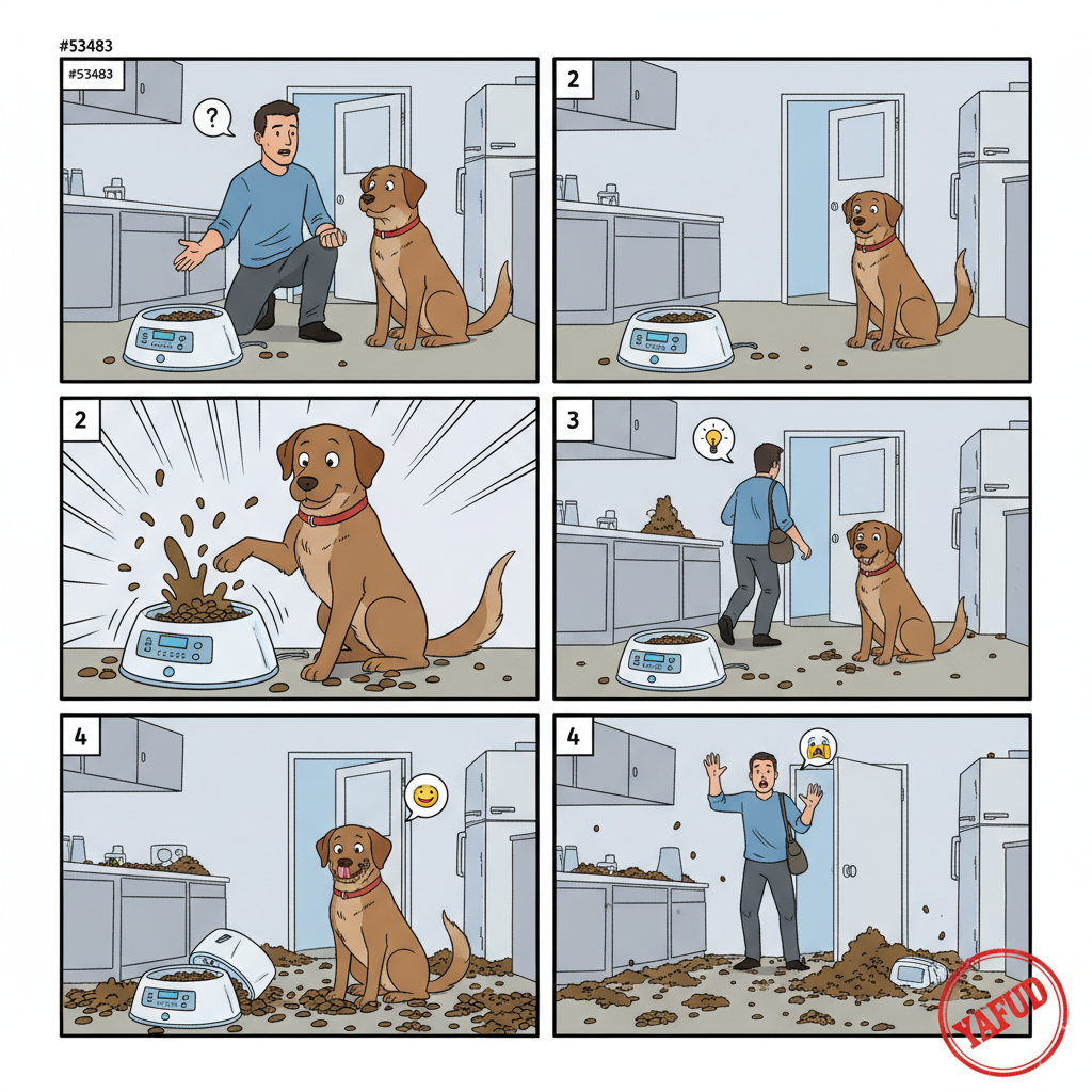 Kupiliśmy psu inteligentną miskę, która miała wydzielać karmę o stałych porach. Po powrocie z pracy zastałem kuchnię zasypaną jedzeniem. Nasz pies-geniusz odkrył, że uderzając w urządzenie pod odpowiednim kątem, może je oszukać i wydobyć całą zawartość. Teraz miska leży w szafie. YAFUD«Poprzednia wpadkaNastępna wpadka »