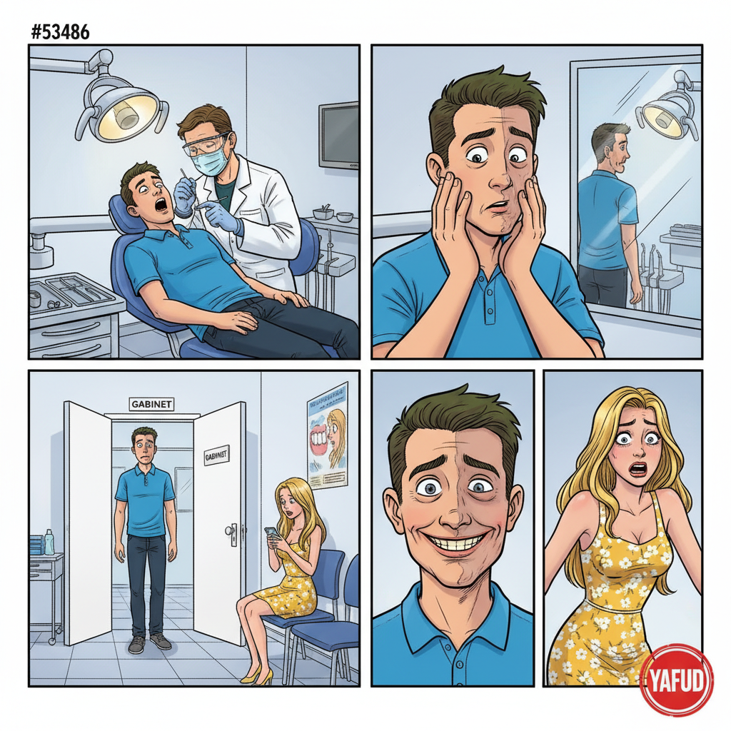 Byłem u dentysty na leczeniu kanałowym. Znieczulenie zadziałało tak mocno, że miałem sparaliżowaną połowę twarzy. Kiedy wyszedłem z gabinetu, w poczekalni siedziała dziewczyna, z którą od tygodni próbowałem się umówić. Uśmiechnąłem się do niej, a przynajmniej próbowałem, co musiało wyglądać jak parodia uśmiechu Jokera. Skrzywiła się i odwróciła wzrok. YAFUD«Poprzednia wpadka