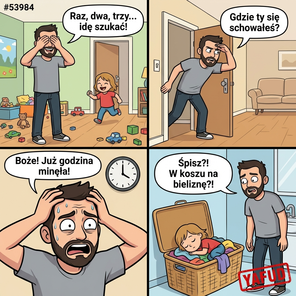 Moje dziecko bawiło się w chowanego. Schowało się tak dobrze, że nie mogliśmy go znaleźć przez godzinę. Okazało się, że zasnęło w koszu na brudną bieliznę, a ja prawie dostałem zawału z nerwów. YAFUD«Poprzednia wpadkaNastępna wpadka »