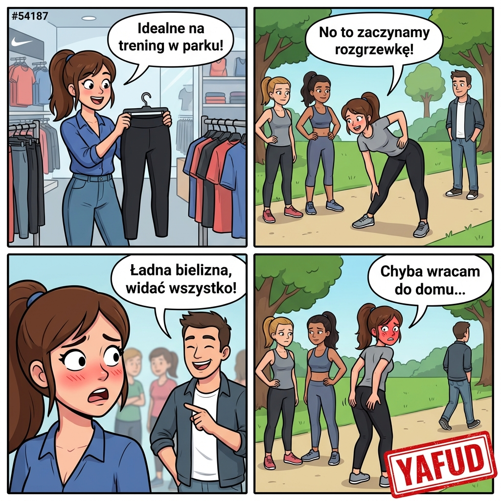 Umówiłam się z koleżankami na wspólny trening w parku. Kupiłam nowe legginsy. Na miejscu okazało się, że są przeźroczyste przy schylaniu. Dowiedziałam się o tym od obcego faceta, który to skomentował w dość niewybrednych słowach. YAFUD«Poprzednia wpadkaNastępna wpadka »