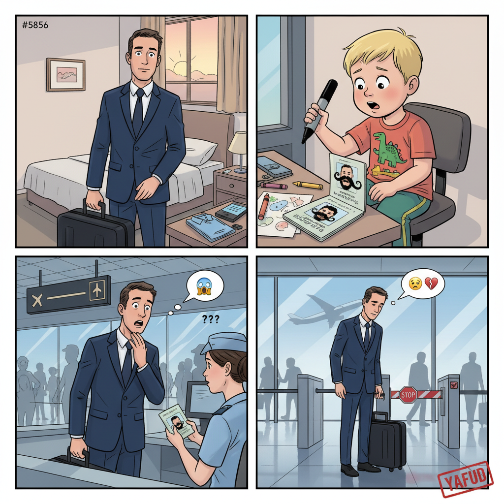 Miałem służbowo lecieć za granicę. Niestety na lotnisku okazało się, że mój pięcioletni synek dorysował mi niezmywalnym flamastrem na zdjęciu w paszporcie brodę i wąsy. Nie poleciałem... YAFUD«Poprzednia wpadkaNastępna wpadka »