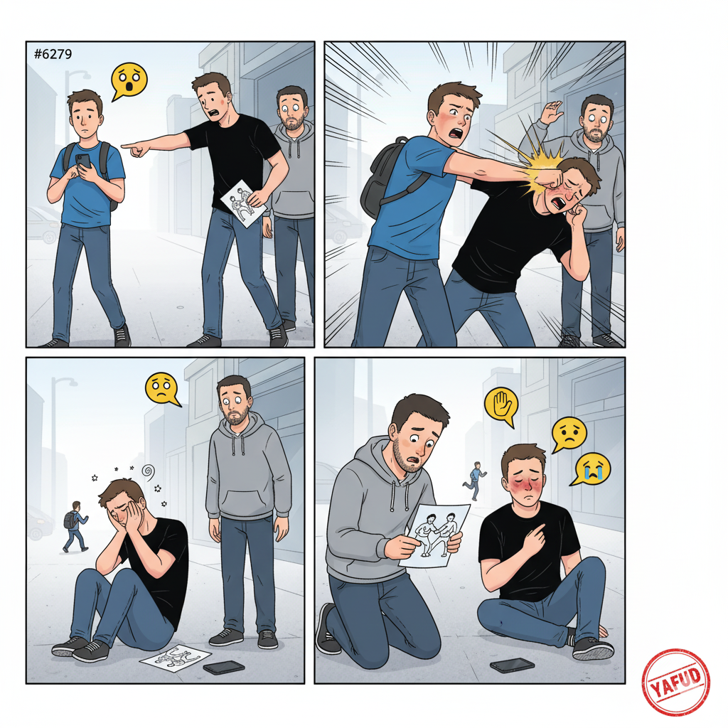 Ostatnio podeszło do mnie dwóch gości. Jeden z nich powiedział: "Dawaj komórkę!". O nie, na to nie pozwolę. Zamachnąłem się i z całej siły uderzyłem go w twarz, a następnie uciekłem. On zwijał się na ziemi z bólu, a ten drugi stał jak słup soli. Jak się potem dowiedziałem, ci dwaj wręczali przestraszonym "ofiarom"ulotkę reklamującą kurs samoobrony. YAFUD«Poprzednia wpadkaNastępna wpadka »