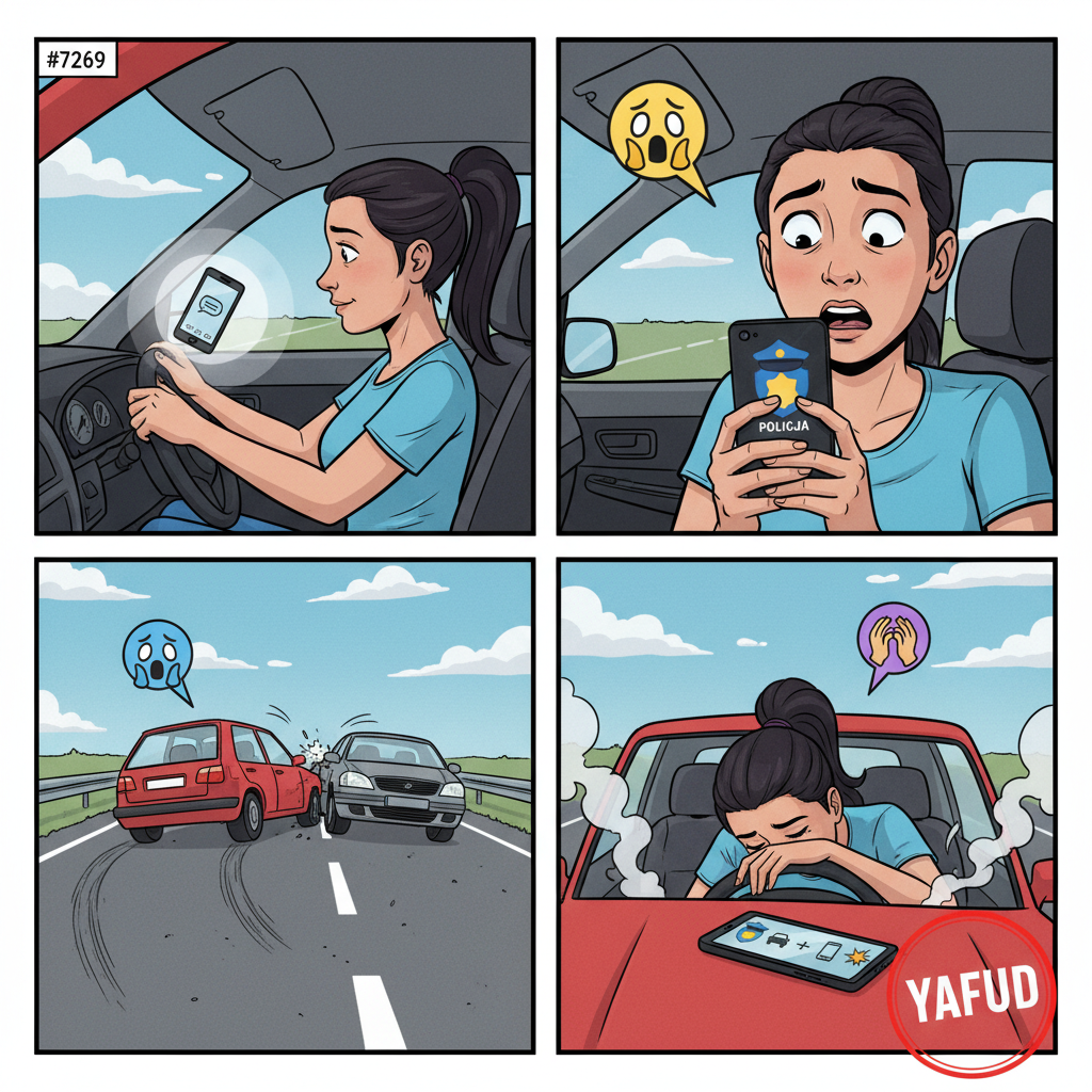 Jadąc samochodem dostałam SMS-a. Odruchowo wzięłam do ręki telefon. Przeraziłam się widząc, że wiadomość jest od POLICJI i wjechałam w inny samochód. Treść wiadomości: "Kierowco! Nie wszystko naraz! JEDZIESZ? NIE KLIKAJ Pisanie SMS + jazda = WYPADEK Zastanów się! Ostrzega Twój operator sieci PLUS i Mazowiecka Policja."Dziękuję operatorowi za SMS-a. YAFUD«Poprzednia wpadkaNastępna wpadka »