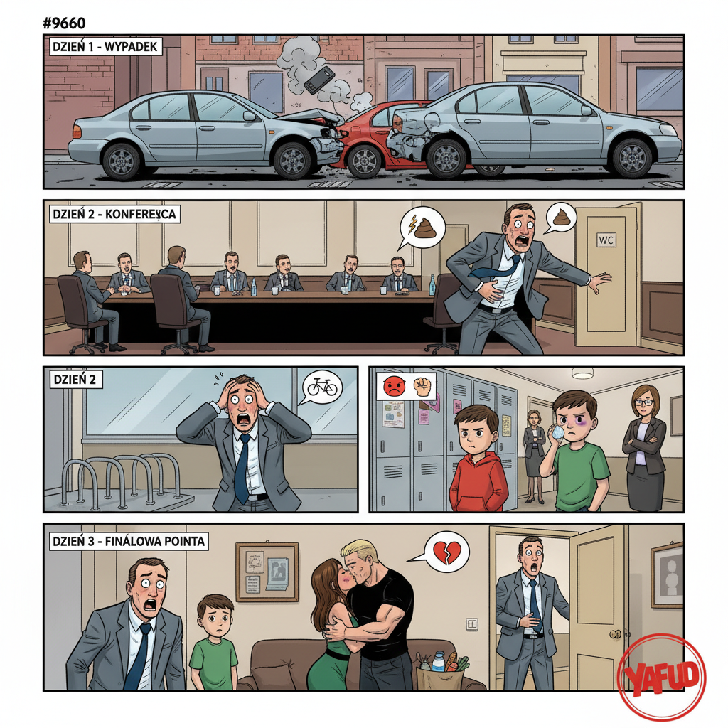 18Nie rozumiem za co autor miał dostać naganę pierwszego dnia. Jeśli ktoś w niego wjechał, to 1. nie jego wina. 2. nawet jeśli gadał przez komórkę, to szef nie musiał o tym wiedzieć i można byłoby się z tego wyłgać.