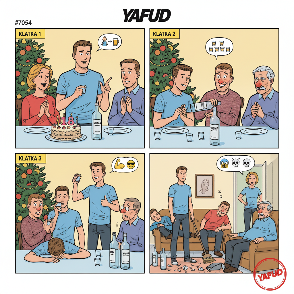 18Jak dziadek jest alkoholikiem (który się leczy)to chyba raczej nie może pić alkoholu, nie? Historyjka zmyślona i to kiepsko...